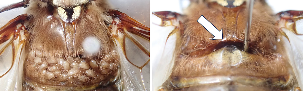 他大学の出身で卒業研究はクモの研究をしていたのだが、大学院でPolyphylla属の甲虫に付着するダニ類の研究をするため、私の研究室に進学してくれた。